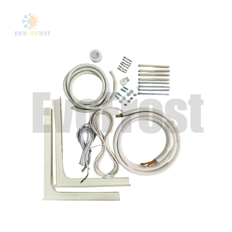 Pentru situațiile în care unitatea exterioară este montată la distanță față de cea interioară, kit-ul complet EvoFrost de 7 metri este soluția ideală. Proiectat pentru aparate de aer condiționat cu putere între 9000 și 12000 BTU/h, acest kit oferă flexibilitate sporită și componente premium pentru o instalare durabilă, sigură și eficientă.